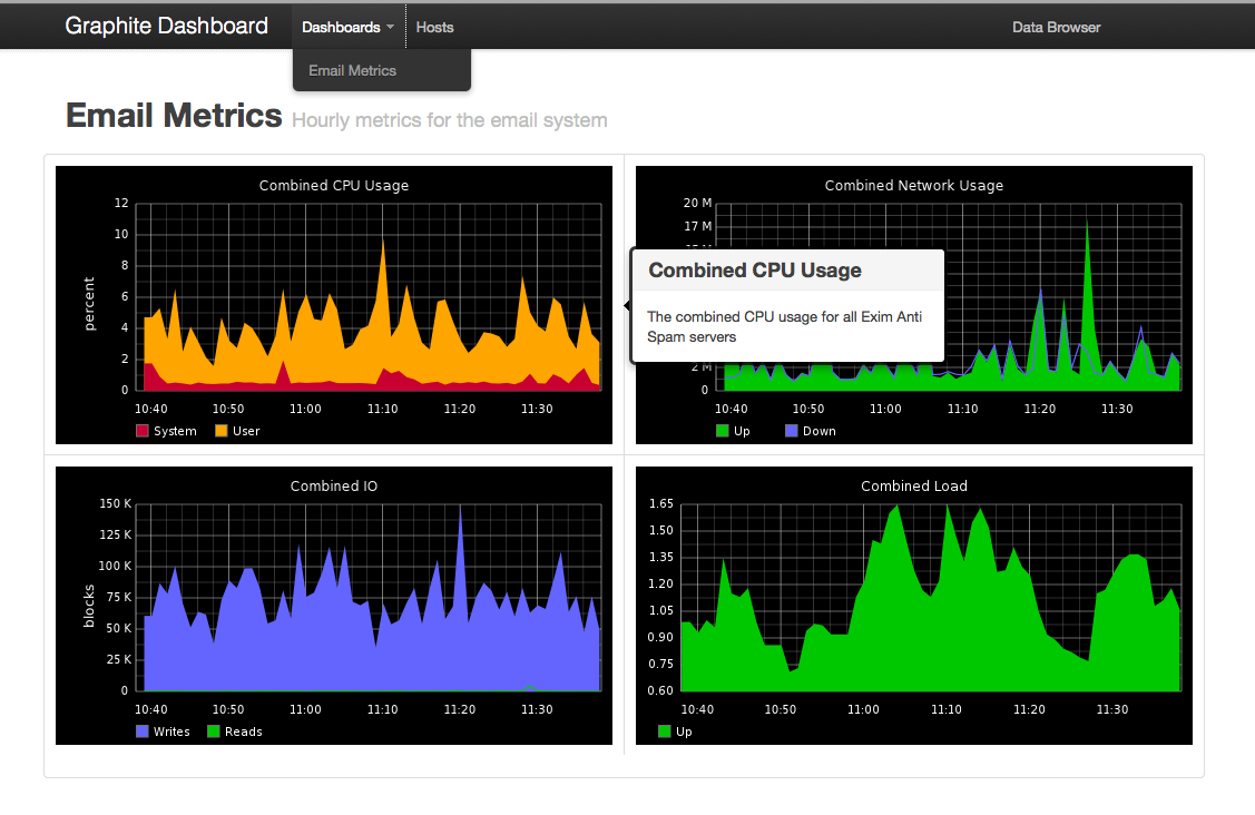 您可以使用Graphite创建您自己的自定义图形,并将它们保存为仪表板。
