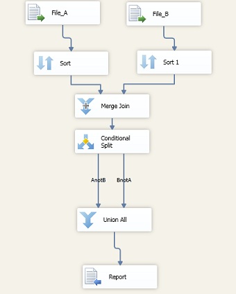 另一种方法可以是将两个平面文件加载到SQL表中,进入平面文件源,并使用执行SQL任务来连接这些表并获取数据。