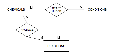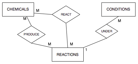 我必须设计一个储存化学反应数据的数据库。我有三个实体:化学,反应和条件。