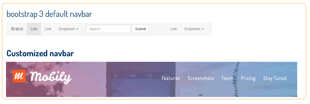 类是..navbar默认值。您需要在您的定制css上创建一个类,并遵循css代码。此外,如果你不想在你的菜单上的框阴影,你可以放在同一类。