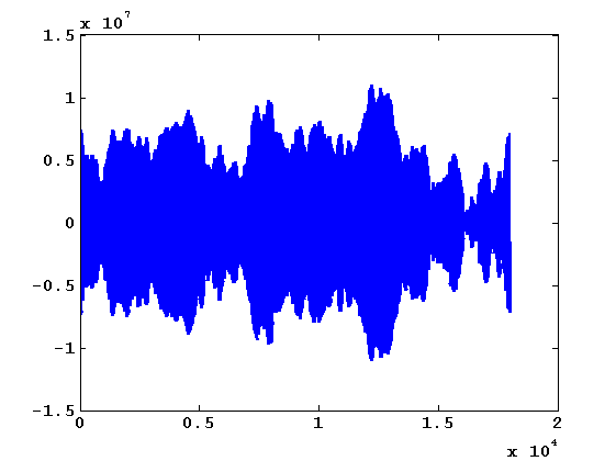 实序列的FFT是由实部和虚部组成的复数序列。把这些数字转换成极坐标,就会得到震级和相位角。您正在用p=aps(fft(...))捕获震级部分,但没有捕获相位角(这将涉及到atan2(...))。然后,当你重建你的时间序列时,你正在合成随机数(epsilon=...),并使用这些数字来代替原来的数字。另外,由于实序列的FFT有一种特殊的对称性,用随机数代替相位角会破坏这种对称性,这意味着IFFT通常不再是一个实数序列,而是一个复数序列--再一次,您只查看IFFT的真实部分,所以您再次丢弃信息。如果这是一个音频信号,结果可能听起来有点像原来的(或他们可能完全不同),但波形肯定不匹配.