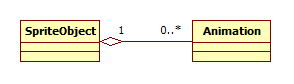 选项1:多样性应该这样表示,因为每个SpriteObject都有0或更多的动画。由于动画不知道SpriteObject的存在,所以在SpriteObject的侧面没有表示多重性。