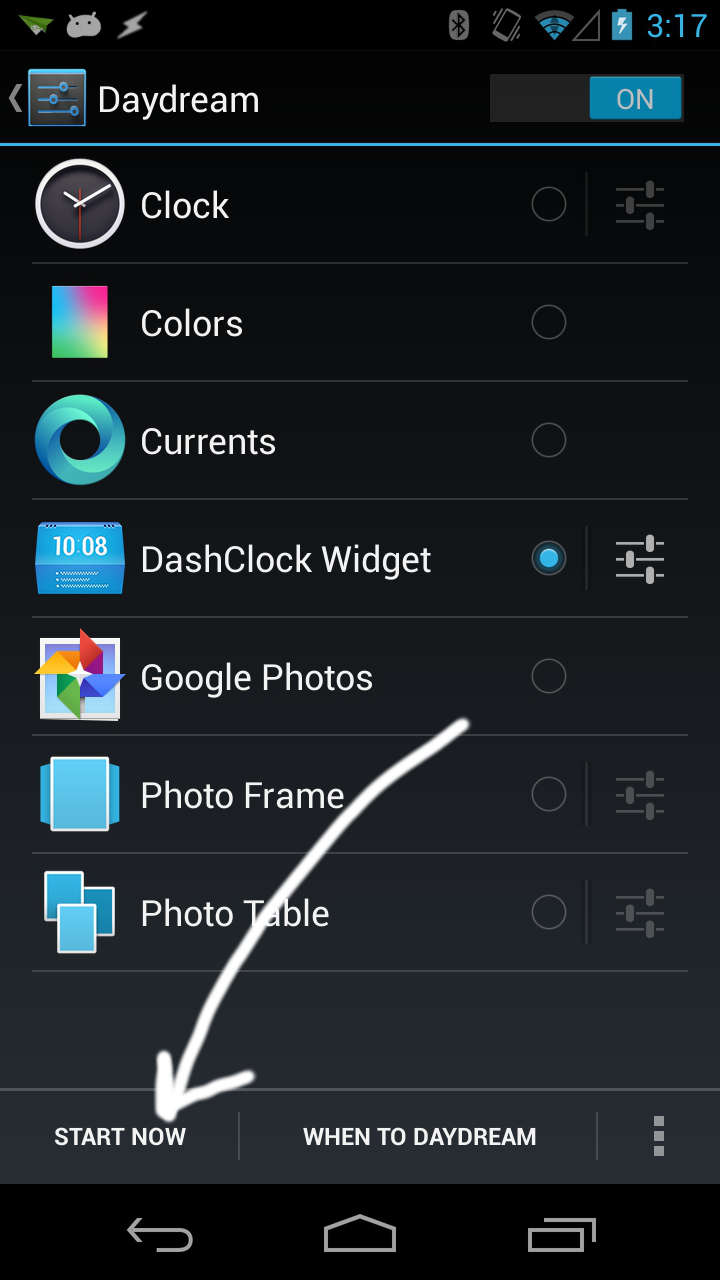 在我的Galaxy上,我可以点击系统首选项中的这个按钮来启动我目前选择的白日梦。