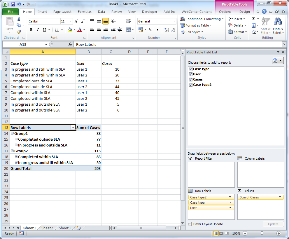 您得到的是另一个组级别,您可以小计/排序/重命名/任何.就像你在你的详细数据中插入这样的列一样.在默认布局中,组和位于顶部,您可以通过数据透视表工具/设计/小计.