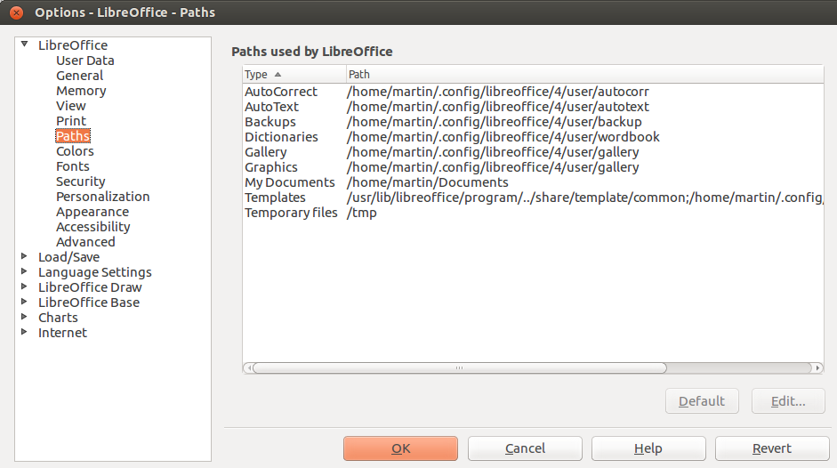 /home/martin/.config/libreoffice/4/user/Scripts并重新加载应用程序,但未显示测试宏。