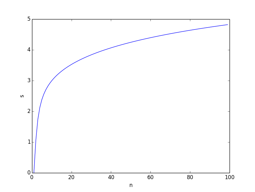 s * n = (n + s) * log(n) --> s * (n - log(n)) = n * log(n) --> s = ------------