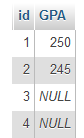 因此,举个例子,在尖塔下面,我有一个简单的表,名为students。有些学生的GPA = NULL。我有一个查询来计算不同的GPA值:
