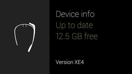 要连接亚行到谷歌眼镜,你必须打开设备上的调试模式。如果电源按钮关闭,用一秒的按压打开玻璃。点击旁边的触屏,到达时间和语音提示屏幕。现在,你的手指在触控板上朝着你的后脑勺,直到你看到设置卡。点击触控板进入设置菜单。刷向你的头部正面,直到你看到设备信息卡。