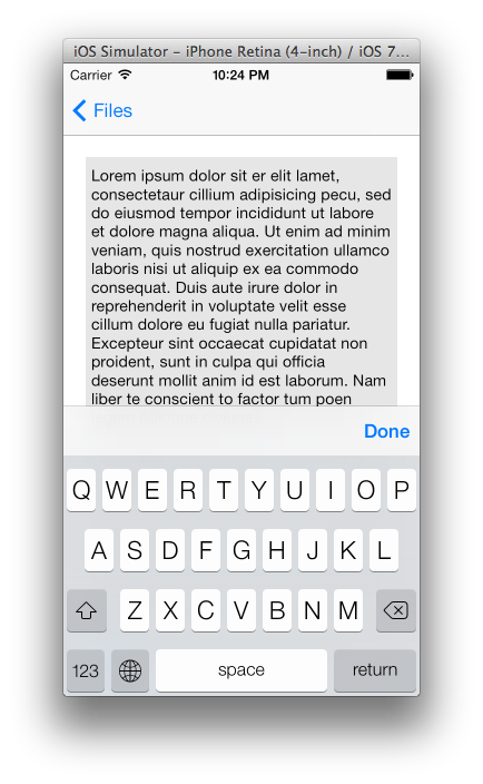 好消息是,我发现,每当文本视图成为第一个响应器,并且键盘显示在屏幕上时,即使在键盘消失之后,这个上限也会消失。顺便说一下,我正在调整contentInset在UIKeyboardDidShowNotification和UIKeyboardWillHideNotification上的大小。
