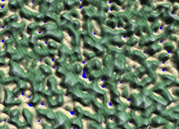好吧,还有一个更有趣的选择.与其使用生成和插值随机值的正方形x网格,只需将x网格转换为六边形网格,将第二行横向移动0.5,然后使每一行0.866,这就创建了一个triagle格,而不是正方形网格,在正三角网格的每一个交点上都有一个随机点。