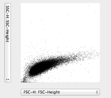 然而,当我绘制数据时,我得到一个倾斜的点图,其中散射向FSC轴弯曲。