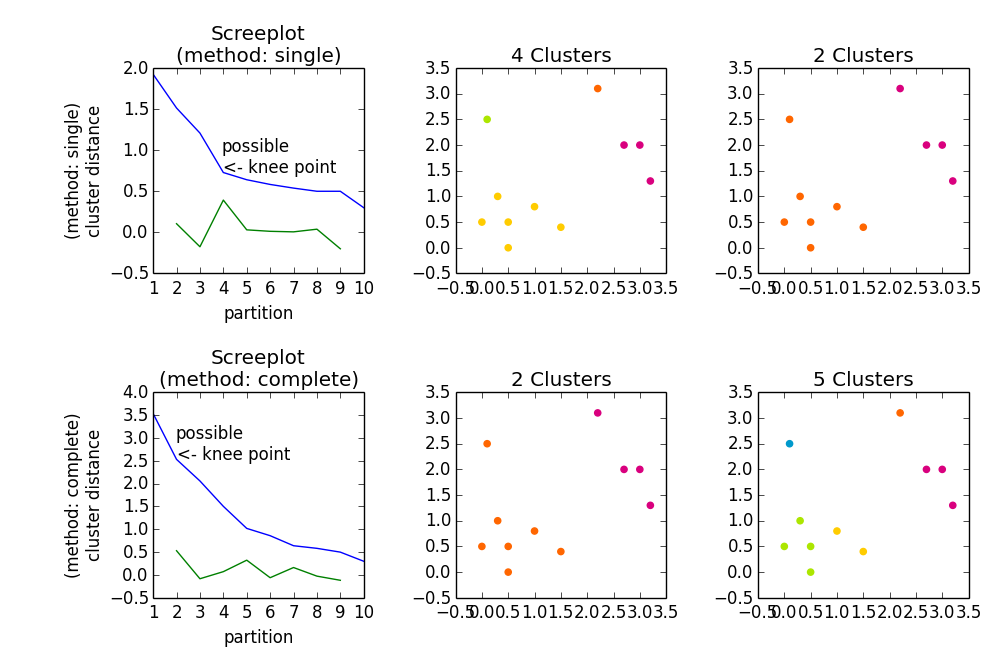 metric是合适的,例如cityblock或chebychev将对数据进行不同的量化(cityblock、euclidean和chebychev对应于L1、L2和L_inf规范)methdos的不同性质/行为(如single、complete和average)这里有一些事情要开始