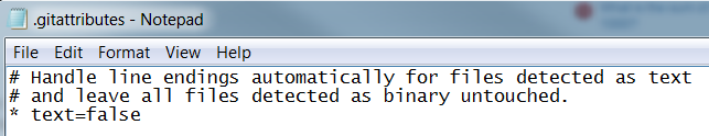 在您的项目中,应该有一个.gitattributes文件。大多数情况下,它应该如下(或此屏幕截图)所示: