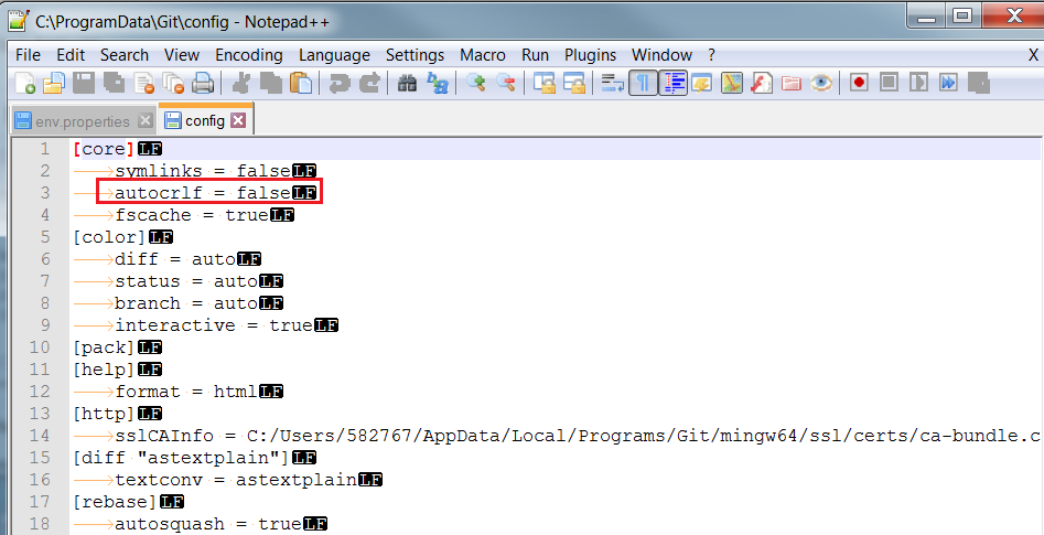 git config --global core.autocrlf false git add --renormalize .如果有自动完成的转换,这意味着回购中存在一个.gitattributes 指令。