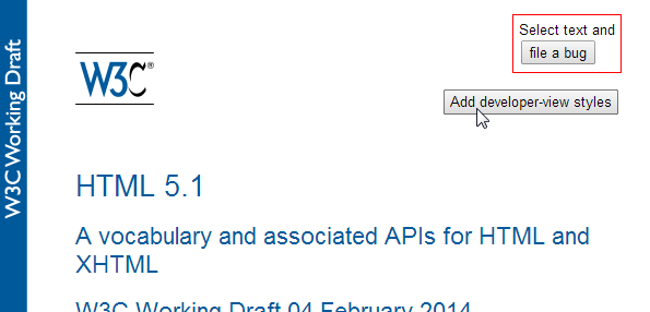 单击引号中的链接查看HTML规范。然后,单击右上角的按钮打开developer样式: