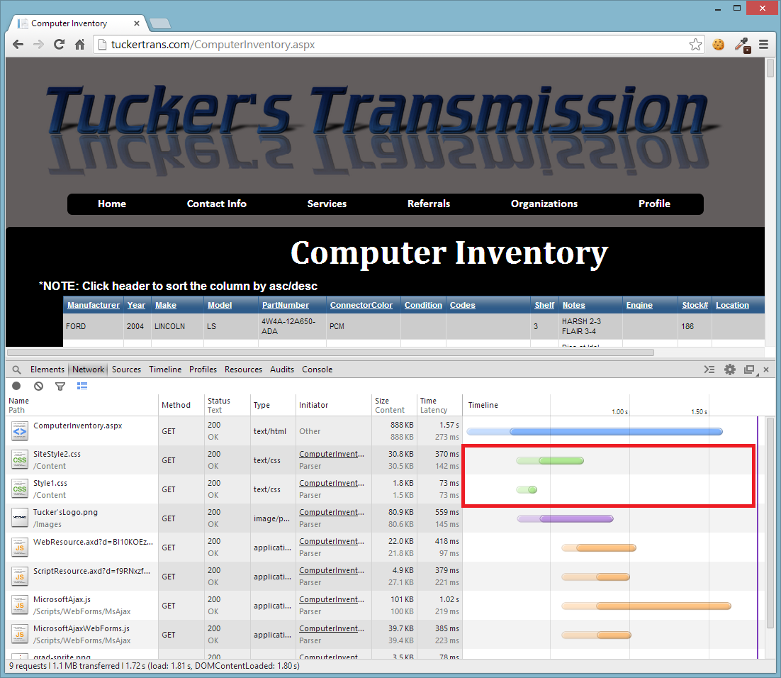 客户端浏览器接收CSS文件的时间比ComputerInventory.aspx晚。这在网页中是正常的。