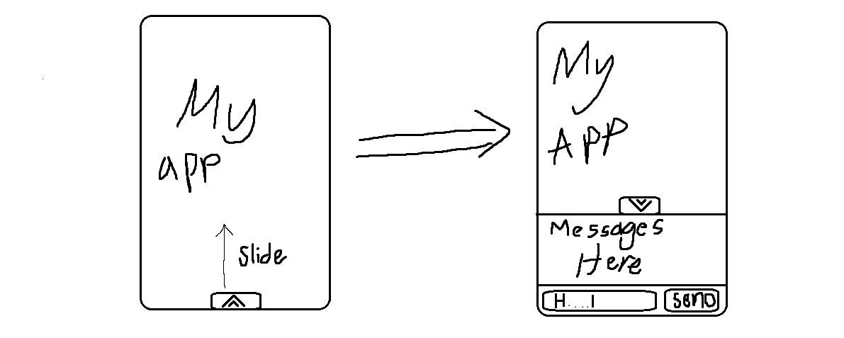 我不想这个聊天界面总是可见,因为空间问题,我想有一个选项卡,你可以按下或幻灯片,将带来聊天菜单。我有个草图让你明白我的意思..。