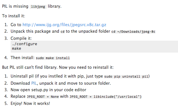 这是为您丢失的JPEG支持在您的PIL这里是我的解决方案在这里解释。https://apple.stackexchange.com/questions/59718/python-imaging-library-pil-decoder-jpeg-not-available-how-to-fix
