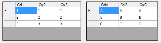 我有两个独立的数据,一个整数和一个字符串。这两个表的大小都是3x3,我想简单地合并这两个表并在datagridview中显示它们,这样我就可以显示一个3x6数据视图。