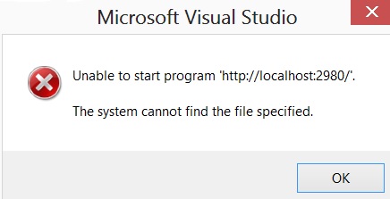 尝试在您的浏览器中访问http://localhost:2980,而无需在Visual中进行调试。它应该会给你一个更准确的错误。