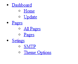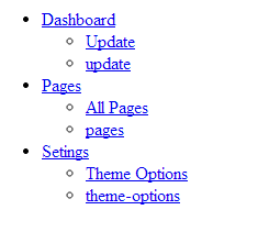 $admin_submenu_page['setings'] = array("Theme Options", "theme-options");--这是在页面中呈现菜单的html部件。