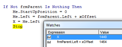 Me.Move frmParent.Left + xOffset, frmParent.Top + yOffset