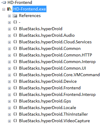 我最近安装了Bluestacks仿真器。我碰巧看到了在ProcessExplorer下运行的进程,惊讶地发现它是一个.NET应用程序。