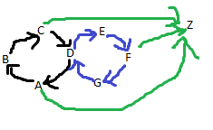 这里,从G到D,D到A的输出必须在下一批处理。这意味着G的输出在2批之后达到A,而A到D的输出发生在同一批中。