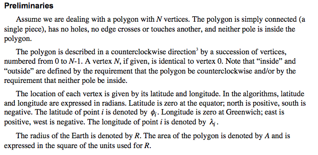 我试图为MKPolygon建立一个面积计算类别。我找到了一些JS代码https://github.com/mapbox/geojson-area/blob/master/index.js#L1,其中有一个指向算法:http://trs-new.jpl.nasa.gov/dspace/handle/2014/40409的链接。上面写着: