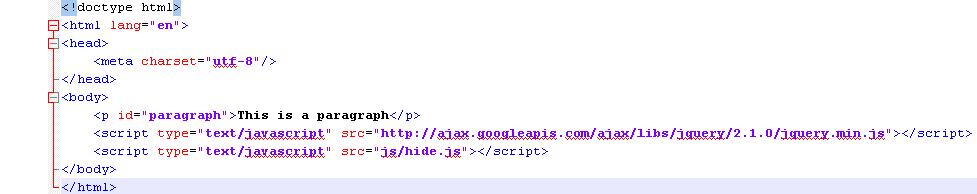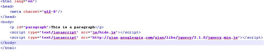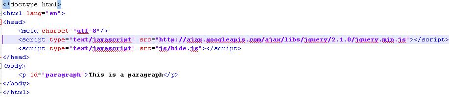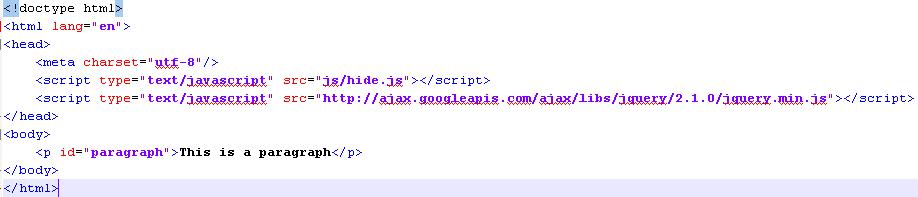 (4)的问题是,您需要将代码包装在document.ready块中。由于<body>位于<head>之后,在运行hide.js时#paragraph并不存在。