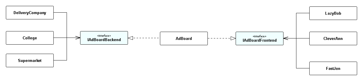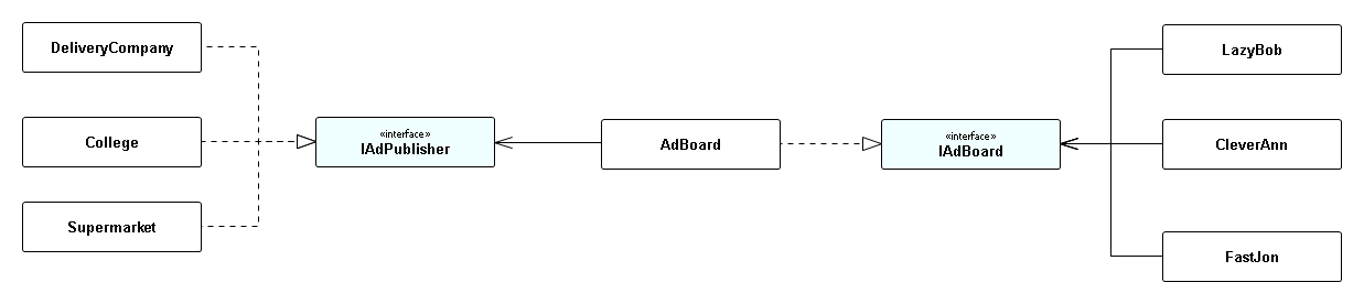 考虑到您希望最小化耦合,理想情况下,公司和JobSeekers只需要使用到AdBoard的接口,但它们不需要任何结构更改。