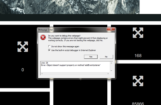 通常的解决方案是:您必须在IE版本中使用attachEvent,然后才能使用IE9。检测是否定义了addEventListener,如果没有定义则使用attachEvent。