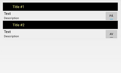 在ListView的自定义视图中,我有一个“标题(TextView)”、“拆分器或边框(TextView)”,然后是ListView。通过这种方式,我可以创建一个包含类别的列表,而不是让它们看起来都一样。在列表中可能有另一个只有文本的列表,一个有图像和文本,一个有图像、文本和按钮。
