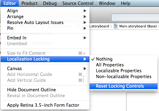 您可以在Reset Locking Controls菜单中尝试“Editor > Localization Locking”(不要忘记首先选择左边栏上的故事板):