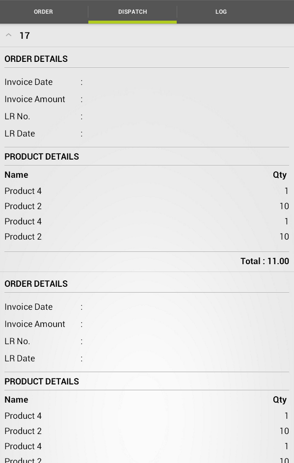 R.layout.frag_dispatch_order_product_child_layout, // Dispatch Details Child Layout