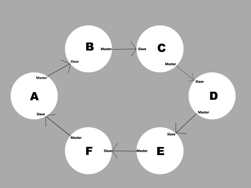 我有六个数据库(MySQL)部署在世界各地的特定地区,复制将被设置。每个数据库由一个web服务器连接,因此总共有6个web服务器连接到一个数据库。