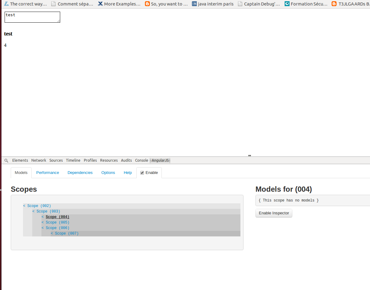 我有一个关于AngularJs范围的问题,特别是如何使用Batarang扩展来检查这些范围。