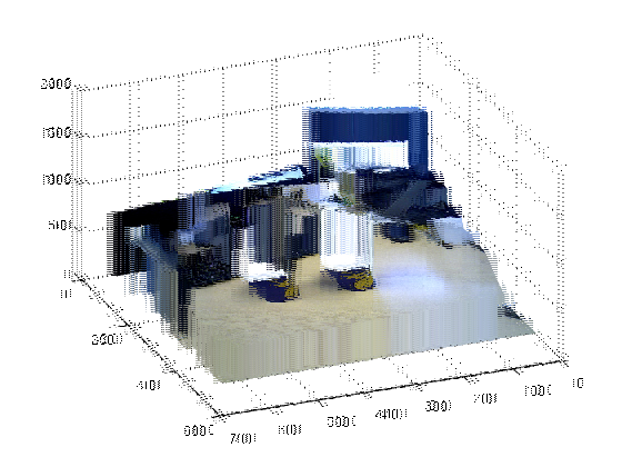 surf(depth, img, 'FaceColor', 'texturemap', 'EdgeColor', 'none' )