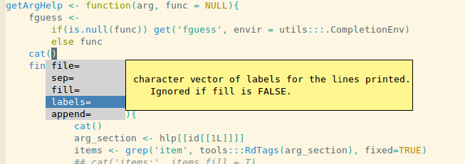 ...that I在使用ESS进行R开发时,应该可以访问emacs中自动完成帮助的工具提示。最后一个链接还指定它应该使用最新的ESS开箱即用,并且: