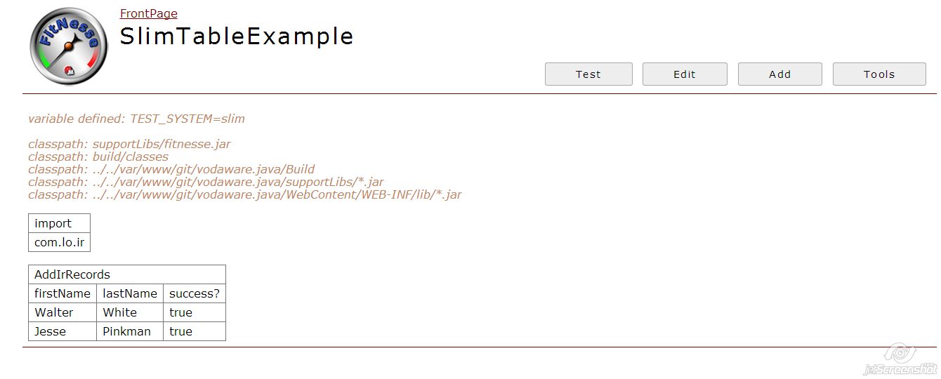 确保正确地提到包的层次结构,同时将其设置在fitnesse列中。