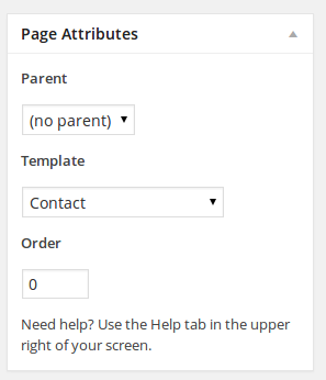 </div> <!-- end #inner-content -->对于此联系人页面,我在page > template下拉菜单中为其选择了联系人(contact.php)模板,如下所示: