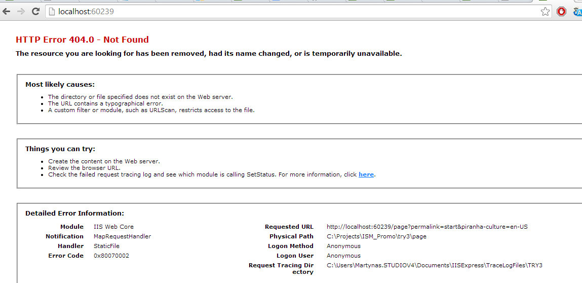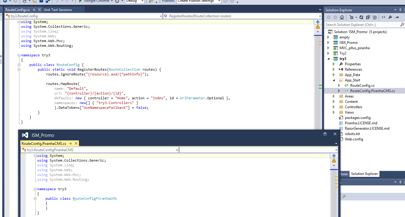 你能把你的路由配置..。我认为你的问题是改变路线。比较我的web.config和你的,我注意到一些不同之处.您的目标是4.5.1,而我的目标设置为框架4.5。我还必须为剃须刀设置一个绑定重定向,尽管这对您可能不是一个问题。