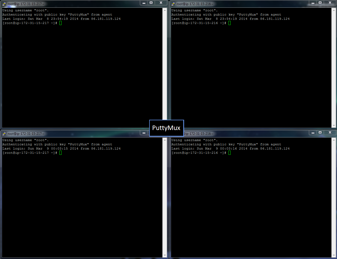 我写了一个小实用程序,允许我多路输入到多个终端窗口;