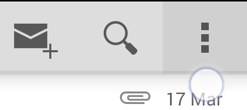 为了增加这一点,设计文档指出,可触摸的UI组件应该从彼此之间间隔为8dp。但是,操作栏中的项在它们之间的可触摸区域之间没有8 db的间距。下面是官方Gmail应用程序中动作栏项目的截图。