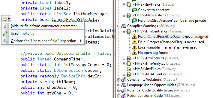如果ReSharper告诉您字段没有分配,但没有提供帮助您删除它,那么这将是由于字段没有被分配,而是被引用的事实。