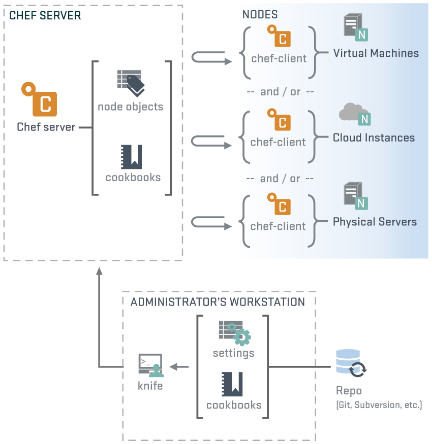 厨师文档提供了一个很好的图表,解释了以下之间的关系:
