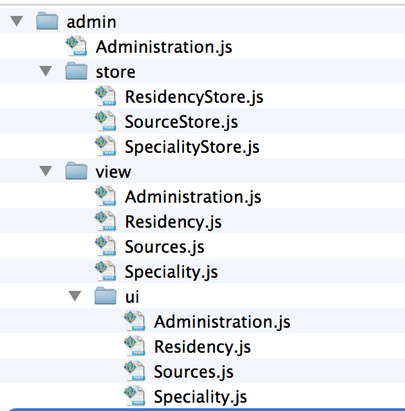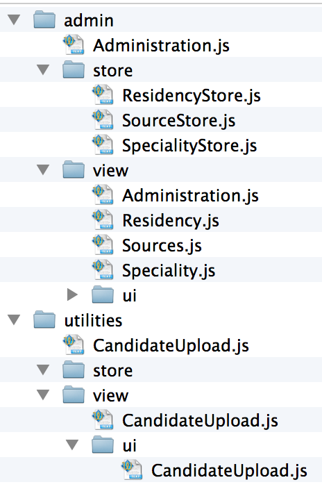 我们有一个extjs应用程序,我们布置的结构与Sencha推荐的结构不完全匹配。在我们的结构中,我们没有一个app.js,但是我们确实有一个js,其中我们提到了autoload和启动函数,例如下面的文件夹结构。