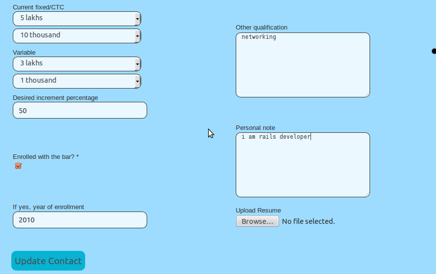我是在一个工作地点的项目中,候选人可以上传那里的简历,这是非常好的工作,但当候选人想编辑他的个人资料时,简历文件字段没有显示已经附上的简历。