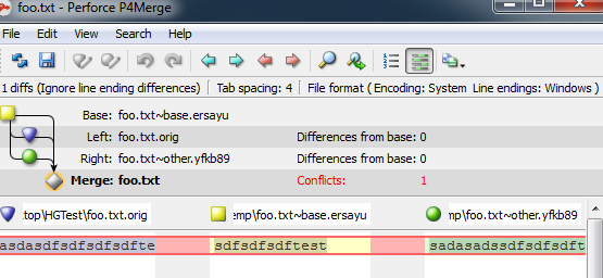 我刚刚测试了语义合并-Mercurial集成(将p4merge配置为外部测试合并工具)。