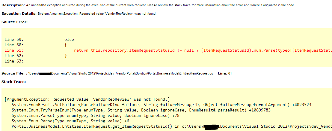 我终于弄明白了。在POST中,视图中的每个值都被循环通过,按字段在窗体上出现的顺序排列。我未能将该字段(ItemRequestStatusId)作为隐藏字段添加到表单中,因此,我所期望的值没有被转发。一旦我添加了隐藏字段,我就看到了我在上面发布的代码中所期望的值,也看到了我期望看到的结果(并且错误也消失了)。